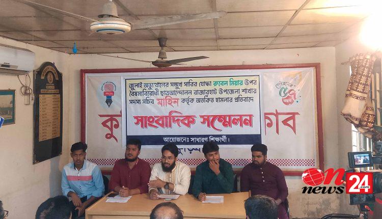বৈষম্য বিরোধী ছাত্র আন্দোলনের সদস্য সচিব কর্তৃক হামলার প্রতিবাদে কুড়িগ্রামে সংবাদ সম্মেলন