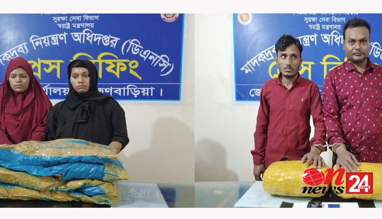 ব্রাহ্মণবাড়িয়ায় গাঁজা-ইয়াবাসহ ৪ মাদক ব্যবসায়ী আটক