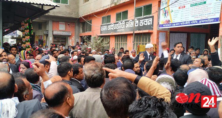 ব্রাহ্মণবাড়িয়ায় জেলা জজের অপসারণ দাবিতে আইনজীবীদের বিক্ষোভ