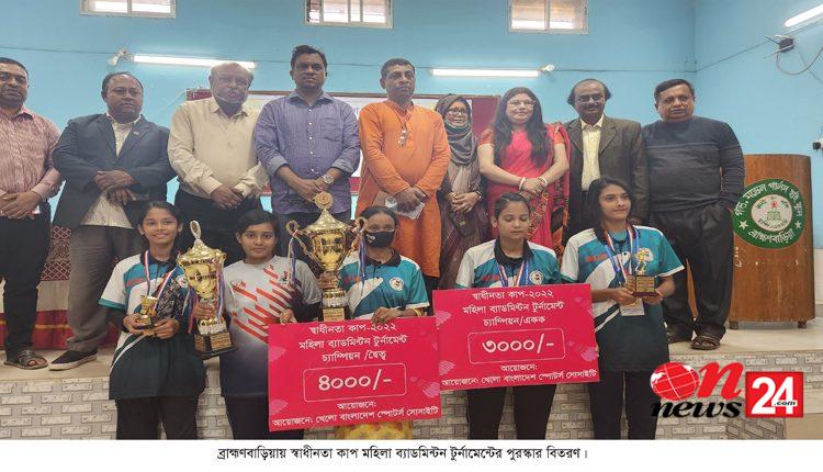 ব্রাহ্মণবাড়িয়ায় “খেলো বাংলাদেশ স্পোর্টস সোসাইটি ও ভারত-বাংলাদেশ সাংস্কৃতিক মৈত্রী পরিষদ” এর উদ্যোগে স্বাধীনতা কাপ মহিলা ব্যাডমিন্টন টুর্নামেন্টের পুরস্কার বিতরণ অনুষ্ঠান অনুষ্ঠিত হয়েছে।