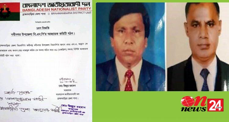 ব্রাহ্মণবাড়িয়ার নবীনগর বিএনপির আহবায়ক কমিটি ঘোষণা