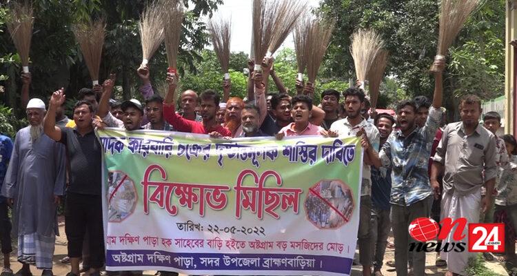 ব্রাহ্মণবাড়িয়ায় মাদক কারবারীদের বিরুদ্ধে এলাকাবাসীর ঝাড়ু মিছিল