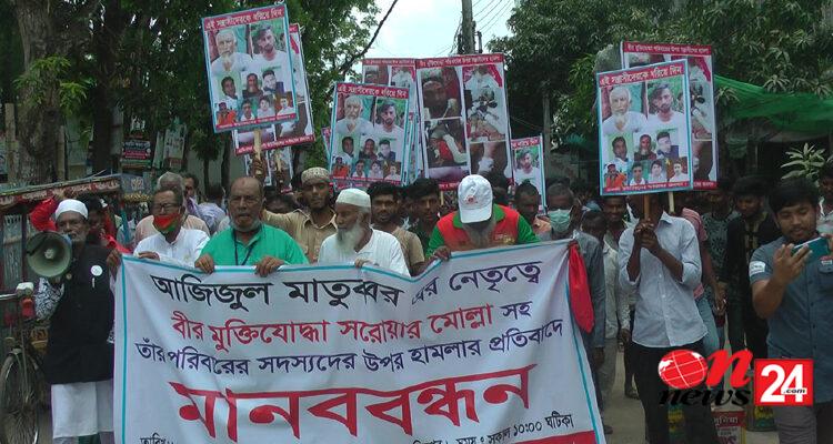 ভাঙ্গায় বীর মুক্তিযোদ্ধা সরোয়ার মোল্লা ও তার পরিবারের উপর সন্ত্রাসী হামলার প্রতিবাদে মানববন্ধন