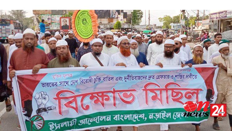 ভারতের সাথে দেশ বিরোধী চুক্তি বাতিল এবং দুর্নীতিবাজদের দ্রত গ্রেফতার ও শাস্তির দাবি নড়াইলে ইসলামী আন্দোলনের বিক্ষোভ মিছিল ও সমাবেশ অনুষ্ঠিত