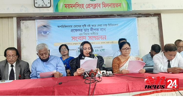 ভুল চিকিৎসার বিচার দাবিতে ময়মনসিংহে দৃষ্টি হারানো নারী চিকিৎসকের সংবাদ সম্মেলন