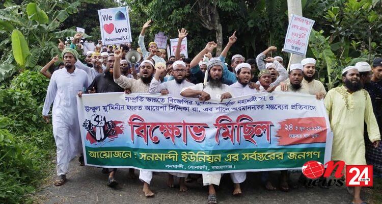 মহানবী (সাঃ) কে কটুক্তির প্রতিবাদে সোনারগাঁ সনমান্দী বিক্ষোভ মিছিল