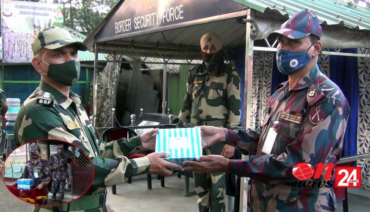 মহান বিজয় দিবস ও স্বাধীনতার সুবর্ন জয়ন্তি উপলক্ষ্যে বিএসএফকে মিষ্টি উপহার দিয়েছে বিজিবি