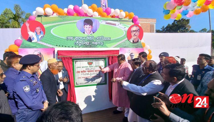 এর আগে প্রতিমন্ত্রী জাহিদ আহসান রাসেলকে তেঁতুলিয়া কাজী শাহবুদ্দিন বালিকা উচ্চ বিদ্যালয় ও কলেজের খেলোয়াড় শিক্ষার্থীরা ফুলদিয়ে বরণ করেন। এর পর তিনি ভিত্তিপ্রস্তর উদ্বোধন করে বৃক্ষরোপণের মাধ্যমে শেখ রাশেল মিনি স্টেডিয়ামের কাজের শুভ উদ্বোধন করেন। পরে পঞ্চগড় সদর উপজেলায় আরও একটি শেখ রাসেল মিনি স্টেডিয়ামের ভিত্তিপ্রস্তরের উদ্বোধন করেন।