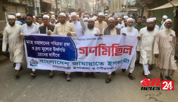 মাহে রমজানের পবিত্রতা রক্ষা , দ্রব্য মুল্যের উর্ধগতি রোধ এবং মাহে রমজান কে স্বাগত জানিয়ে বাংলাদেশ জামায়াতে ইসলামীর কেন্দ্রীয় কর্মসূচীর অংশ হিসেবে শুক্রবার আছর নামাজের পর জামায়াতে ইসলামী সোনাগাজী উপজেলা ও পৌর শাখার উদ্যোগে গণ মিছিল করা হয়।