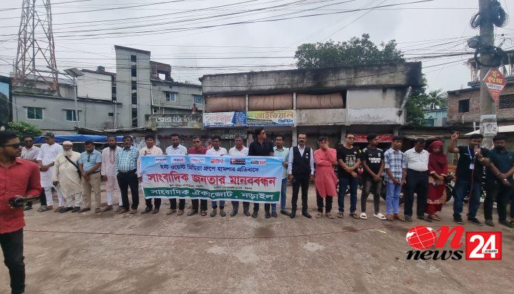 মিডিয়া হাউজে হামলার প্রতিবাদে নড়াইলে সাংবাদিকদের মানববন্ধন