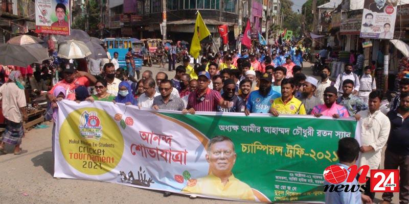 খেলবে মোরা, জিতবে মুকুল’ এই শ্লোগানে ময়মনসিংহের ঐতিহ্যবাহী মুকুল নিকেতন উচ্চ বিদ্যালয়ের সাবেক প্রধান শিক্ষক আমীর আহমেদ চৌধুরী রতন স্যারের স্মরণে চ্যাম্পিয়ন ট্রফি ক্রিকেট টুর্ণামেন্ট উদ্বোধন উপলক্ষে ময়মনসিংহে আনন্দ শোভাযাত্রা অনুষ্ঠিত হয়েছে।