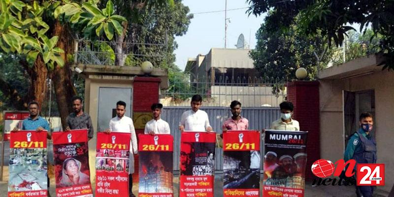 ২৬ নভেম্বর(শুক্রবার) স্বাধীনতা সংগ্রাম পরিষদ নামে একটি সংগঠন গুলশান পাকিস্তান দূতাবাসের সামনে মানববন্ধন করেন। ১৩ বছর আগে আজকের দিনে ভারতের মুম্বাইয়ে ভয়ংকর হামলা চালিয়েছিল জঙ্গিরা। আরব সাগর হয়ে মুম্বাইয়ে এসে হামলা চালায় ১০ জন সন্ত্রাসী। ভয়াবহ সেই হামলা শুধু ভারতকেই নয়, নাড়িয়ে দিয়েছিল গোটা বিশ্বকে। জঙ্গিদের নির্বিচারে গুলিতে নিহত হয় ১৮০ জন। আহত হয় ৩০০ জনেরও বেশি মানুষ।