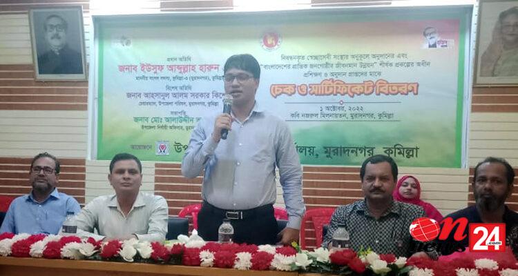 কুমিল্লার মুরাদনগরে বাংলাদেশ জাতীয় সমাজকল্যাণ পরিষদ কর্তৃক প্রদত্ত ১৭টি বে-সরকারি স্বেচ্ছাসেবী প্রতিষ্ঠানকে ৫ লাখ ৭০ হাজার টাকার অনুদানের চেক ও বাংলাদেশের প্রান্তিক জনগোষ্ঠির জীবনমান উন্নয়ন শীর্ষক প্রকল্পের আওতায় ৬টি ট্রেডে প্রশিক্ষণ এবং অনুদানপ্রাপ্ত ৩৭০ জনকে সনদ বিতরণ করা হয়েছে।