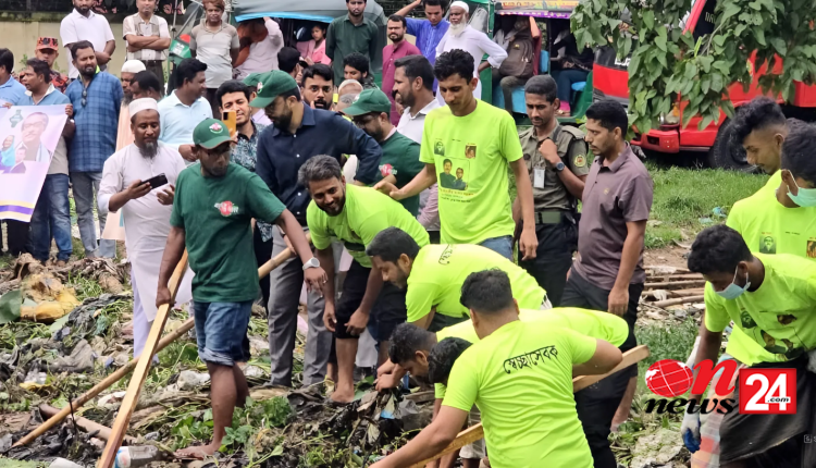 মুরাদনগরে ময়লা পরিষ্কারে খালে নামলেন চেয়ারম্যান ড. কিশোর