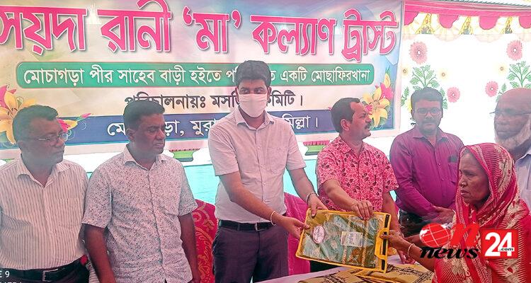 পবিত্র মাহে রমজান ও ঈদ-উল ফিতর উপলক্ষে কুমিল্লার মুরাদনগরে ৩শ’ দরিদ্র পরিবারের মাঝে শাড়ী, লুঙ্গী ও গরুর গোশত বিতরণ করেছেন সৈয়দা রানী মা কল্যাণ ট্রাস্ট। বৃহস্পতিবার বিকেলে উপজেলার যাত্রাপুর ইউনিয়নের মোচাগড়া গ্রামের আমেরিকা প্রবাসী কলম্বিয়া ইসলামিক বিশ^বিদ্যালয়ের অধ্যাপিকা সৈয়দা সুফিয়া আক্তারের অর্থায়নে ওই শাড়ী, লুঙ্গী ও গরুর গোশত বিতরণ করা হয়।