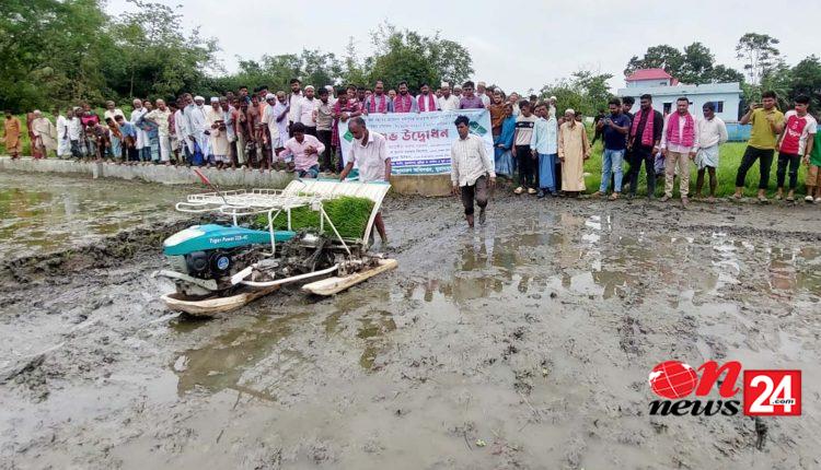 মুরাদনগর উপজেলায় রাইস ট্রান্সপ্লান্টারের মাধ্যমে আউশ ধানের চারা রোপণ করা হচ্ছে