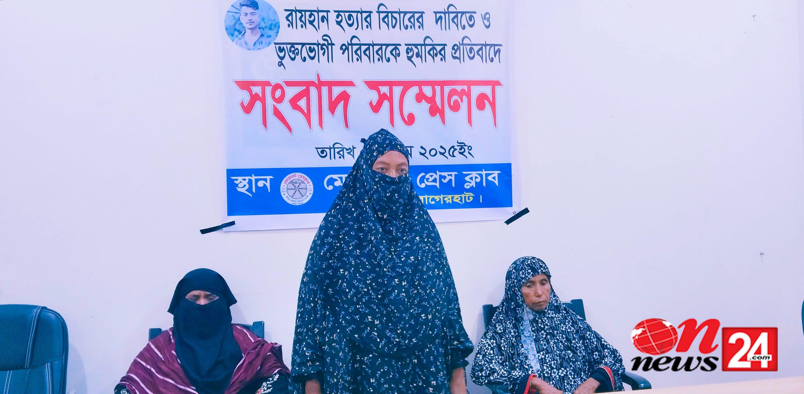 বাগেরহাটের মোল্লাহাটে ইজিবাইক চালক রায়হান হত্যাকাণ্ডের বিচারের দাবিতে সংবাদ সম্মেলন করেছে ভুক্তভোগী পরিবার।