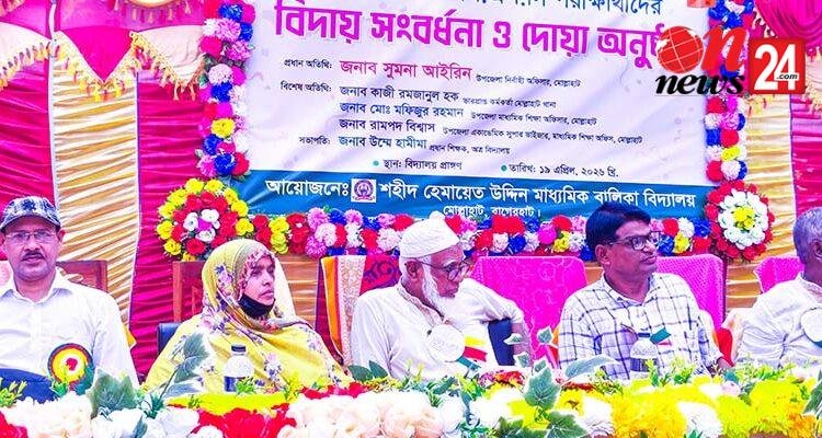 বাগেরহাটের মোল্লাহাটে শহীদ হেমায়েত উদ্দিন মাধ্যমিক বালিকা বিদ্যালয়ের এসএসসি–২০২৬ পরীক্ষার্থীদের বিদায়ী সংবর্ধনা ও দোয়া মাহফিল অনুষ্ঠিত হয়েছে।