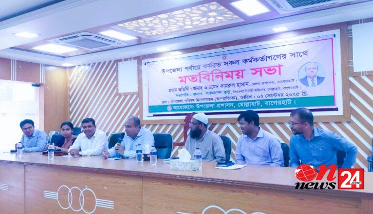 বাগেরহাটের মোল্লাহাটে জেলা প্রশাসকের এক মতবিনিময় সভা অনুষ্ঠিত হয়েছে। মঙ্গলবার (২ সেপ্টেম্বর) দুপুরে উপজেলা পরিষদ মিলনায়তনে অনুষ্ঠিত এ