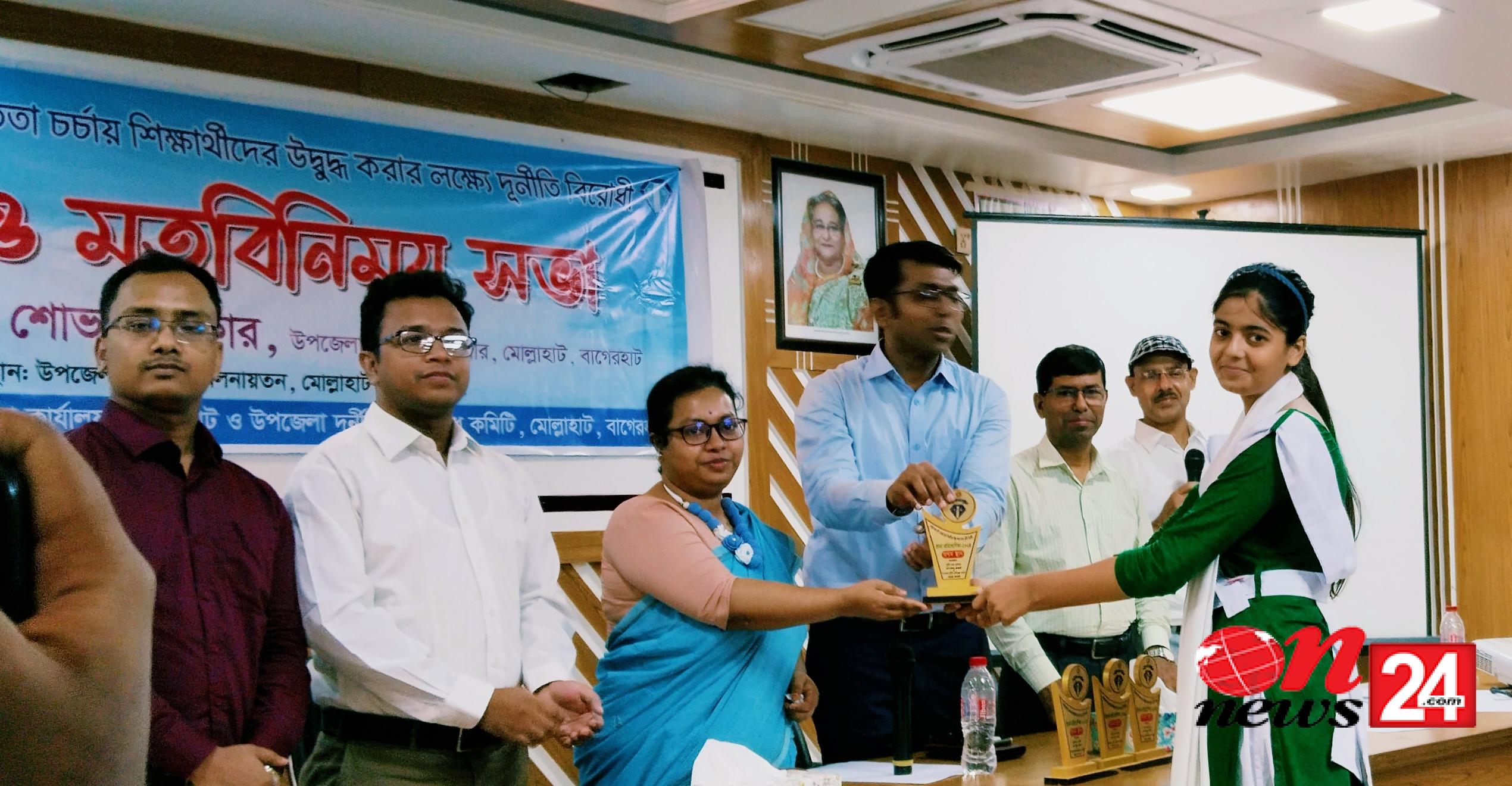 মোল্লাহাটে মঙ্গলবার (৭মে) উপজেলা পরিষদ মিলনায়তনে দুর্নীতি বিরোধী রচনা ও বিতর্ক প্রতিযোগিতা অনুষ্ঠিত হয়েছে। গণসচেতনতা সৃষ্টি ও সততা চর্চায় শিক্ষার্থীদের উদ্বুদ্ধ করার লক্ষ্যে দুর্নীতি দমন কমিশন, বাগেরহাট জেলা কার্যালয় ও মোল্লাহাট উপজেলা দুর্নীতি প্রতিরোধ কমিটির আয়োজনে অনুষ্ঠিত উক্ত প্রতিযোতিার পুরস্কার বিতরণ অনুষ্ঠানে প্রধান অতিথি ছিলেন উপজেলা নির্বাহী অফিসার শোভন সরকার।