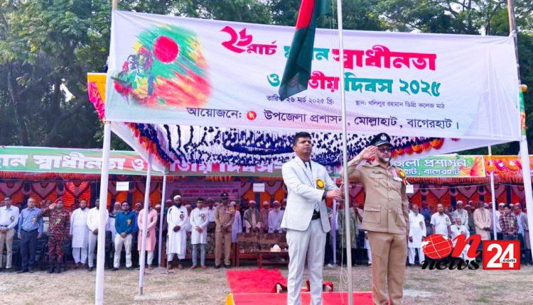 বাগেরহাটের মোল্লাহাটে যথাযোগ্য মর্যাদায় ২৬ মার্চ মহান স্বাধীনতা ও জাতীয় ২০২৫ উদযাপিত হয়েছে ।