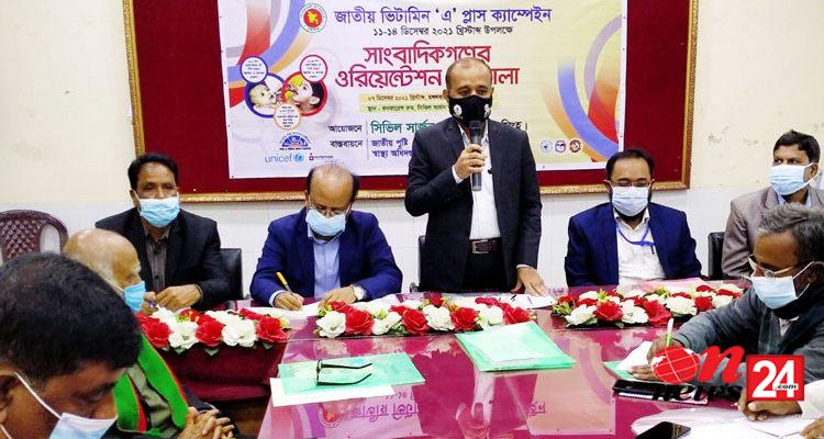 মঙ্গলবার (৭ ডিসেম্বর) সকালে জাতীয় ভিটামিন-এ প্লাস ক্যাম্পেইন উপলক্ষে সাংবাদিকগণের ওরিয়েন্টেশন কর্মশালায় সিভিল সার্জন ডা. নজরুল ইসলাম একথা জানান।