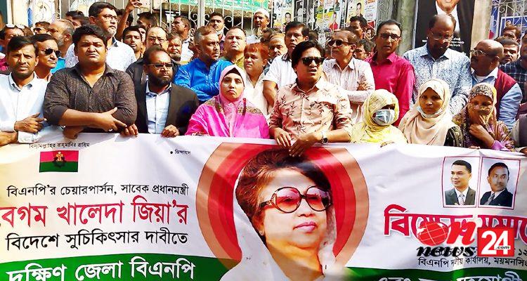 ময়মনসিংহে বিএনপির চেয়ারপারসন বেগম খালেদা জিয়ার নি:শর্ত মুক্তি ও বিদেশে চিকিৎসার সুযোগ প্রদানের দাবিতে বিক্ষোভ মিছিল ও সমাবেশে করেছে ময়মনসিংহ মহানগর ও দক্ষিণ জেলা বিএনপি। সোমবার দুপুরে মিছিল সহকারে নেতাকর্মীরা দলীয় কার্যালয়ের সামনে জড়ো হয়।