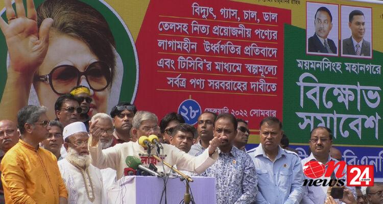 সোমবার (২৮ ফেব্রæয়ারী) দুপুরে ময়মনসিংহ নগরীর বিএনপি কার্যালয়ের সামনে বিদ্যুৎ, গ্যাস, চাল, ডাল তেলসহ নিত্য প্রয়োজনীয় পণ্যের লাগামহীন উর্ধ্বগতির প্রতিবাদে এবং টিসিবির মাধ্যমে স্বল্পম‚ল্যে সর্বত্র পণ্য সরবরাহের দাবিতে মহানগর বিএনপি আয়োজিত বিক্ষোভ সমাবেশে প্রধান অতিথির বক্তব্যে এসব কথা বলেন মির্জা ফখরুল।