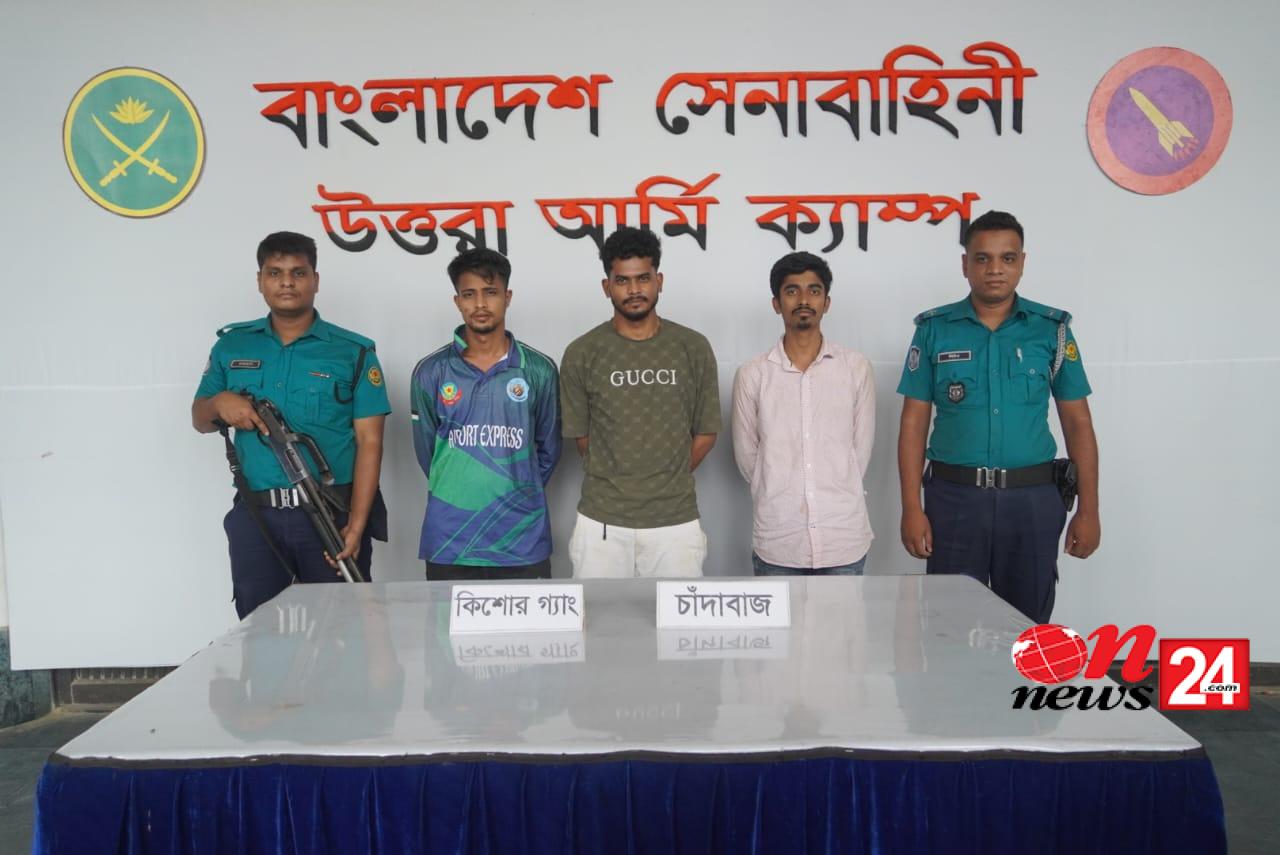 ০৪ অক্টোবর ২০২৫ (শনিবার): আজ ভোর রাতে সুনির্দিষ্ট গোয়েন্দা তথ্যের ভিত্তিতে বাংলাদেশ সেনাবাহিনীর নেতৃত্বে একটি যৌথ অভিযানে সমন্বয়ক পরিচয়ে সন্ত্রাসী কার্যক্রমে লিপ্ত চাঁদাবাজ ও কিশোর গ্যাং লিডার আসাদুর রহমান আকাশ, তার সহযোগী মোঃ ফরিদ উদ্দিন ও মোঃ রবিনকে উত্তরার দক্ষিনখান এলাকা থেকে গ্রেফতার করা হয়।