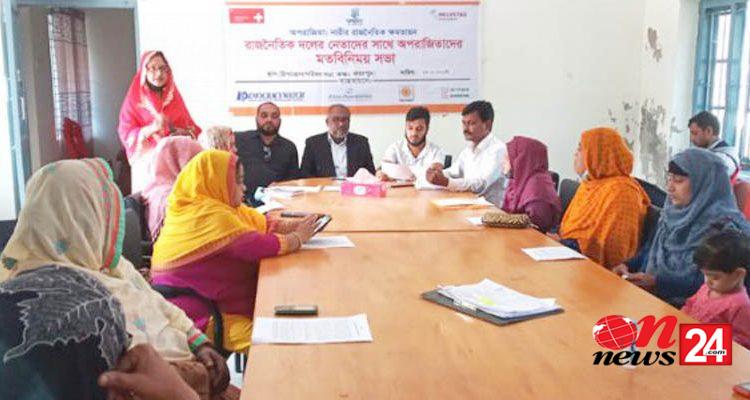 উপজেলা আ.লীগের যুগ্ন সাধারন সম্পাদক মজিবুর রহমান মৃধার সভাপতিত্বে ও রুপান্তর-অপরাজিতা’র উপজেলা সমন্নয়কারী নাসরিন সুলতানা মুন্নির সঞ্চালনায় অনুষ্ঠিত সভায় বক্তব্য রাখেন জাতীয় যুব সংহতি (এরশাদ) রাজাপুর উপজেলা সাধারন সম্পাদক মনিরুজ্জামান রেজওয়ান, জেলা ছাত্রদলের সদস্য আল ইমরান, সাইডো’র নির্বাহী পরিচালক সৈয়দ হোসাইন আহম্মেদ, রুপান্তর এর জেলা প্রকল্প কর্মকর্তা সুরঞ্জিত দাস, ইউপি সদস্য ইয়াসমিন মুন্নি, লাভলী আক্তার ও রোজিনা বেগম প্রমূখ।অনুষ্ঠিত সভায় নারীর রাজনৈতিক ক্ষমতায়ন বিষয়ে বিভিন্ন দিক তুলে ধরেন বক্তারা।