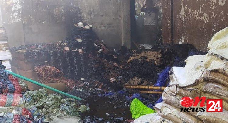 রাণীশংকৈলে ভোররাতের আগুনে গোডাউনের মালামাল পুড়ে ছাই