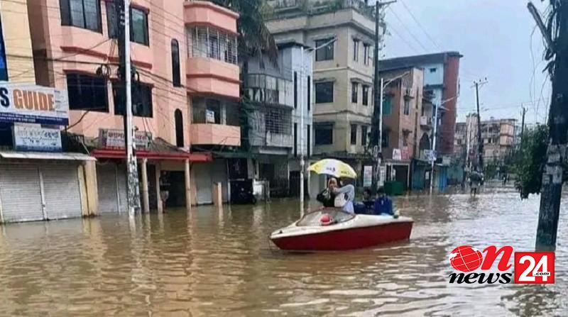 রাতের টানা বৃষ্টি ও বানের পানিতে আবারও তলিয়ে গেছে সিলেট নগরী