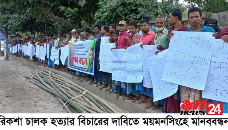 রিকশা চালক হত্যার বিচারের দাবিতে ময়মনসিংহে মানববন্ধন