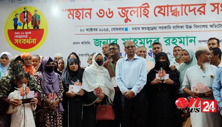 সংবর্ধনা অনুষ্ঠানে কুমিল্লায় শহীদ ৩৯ জনের পরিবার ও ২০ জন আহত সদস্যদের হাতে সম্মাননা ক্রেস্ট তুলে দেন দৈনিক আমার দেশ পত্রিকার সম্পাদক মাহমুদুর রহমান।
