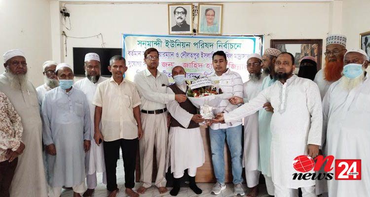 বিনা প্রতিদ্বন্দ্বিতায় দ্বিতীয়বার নব নির্বাচিত সনমান্দী ইউনিয়ন পরিষদের সুযোগ্য সফল চেয়ারম্যান জাহিদ হাসান জিন্নাহকে দৌলতপুর দাখিল মাদ্রাসার শিক্ষক,শিক্ষিকা ও কর্মচারীদের পক্ষ থেকে শুভেচ্ছা ও অভিনন্দন জানান।
