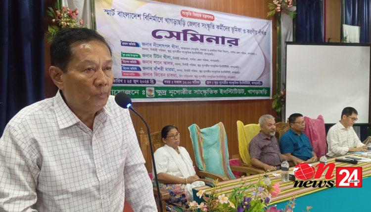 খাগড়াছড়ি ক্ষুদ্র নৃগোষ্ঠী সাংস্কৃতিক ইনস্টিটিউট আয়োজনে মঙ্গলবার সকালে স্মার্ট বাংলাদেশ বিনির্মাণে জেলার সংস্কৃতি কর্মীদের ভূমিকা ও করণীয় শীর্ষক সেমিনারে পার্বত্য জেলা পরিষদ সদস্য নীলোৎপল খীসা প্রধান অতিথির বক্তব্যে এসব কথা বলেন।