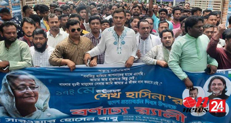 ১৭ মে প্রধানমন্ত্রী ও বাংলাদেশ আওয়ামীলীগের সভাপতি শেখ হাসিনার স্বদেশ প্রত্যাবর্তন দিবস উপলক্ষে কুমিল্লা উত্তর জেলা আওয়ামী যুবলীগের সাবেক যুগ্ম আহবায়ক মোঃ সারওয়ার হোসেন বাবুর নেতৃত্বে বর্ণাঢ্য র্যালি অনুষ্ঠিত হয়েছে।