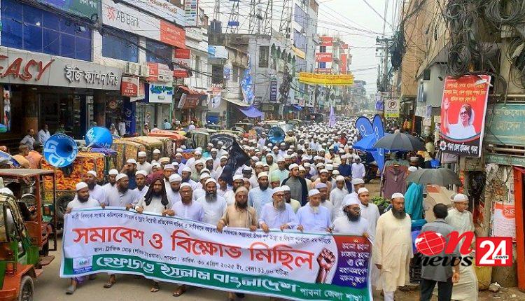 বুধবার (৩০ এপ্রিল) সকাল ১০টায় হেফাজতে ইসলাম পাবনা জেলা শাখার উদ্যোগে এ বিক্ষোভ মিছিল ও সমাবেশ অনুষ্ঠিত হয়।