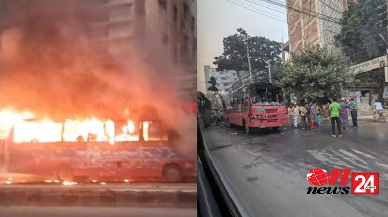 সকালেই রাজধানীতে দুই বাসে আগুন