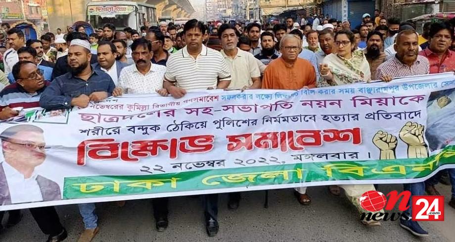 আজ বুধবার সকাল সাড়ে ৮টায় ঢাকা-মাওয়া মহাসড়কে অনুষ্ঠিত এক প্রতিবাদ ও বিক্ষোভ মিছিল শেষে সমাবেশে রিজভী এসব কথা বলেন। ব্রাহ্মণবাড়িয়ার বাঞ্ছারামপুরে পুলিশের সঙ্গে সংঘর্ষের সময় গুলিতে ছাত্রদল নেতা নয়ন নিহতের প্রতিবাদে এই বিক্ষোভ মিছিল হয়। ঢাকা জেলা বিএনপির উদ্যোগে এ বিক্ষোভ মিছিল ও সমাবেশ অনুষ্ঠিত হয়।