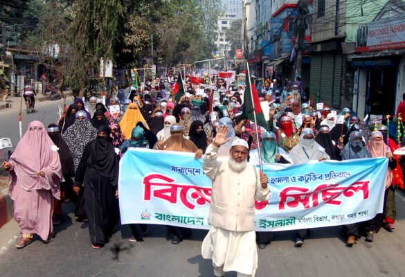 সারাদেশে জামায়াতের মহিলা কর্মীদের উপর হামলার প্রতিবাদে বগুড়ায় মিছিল