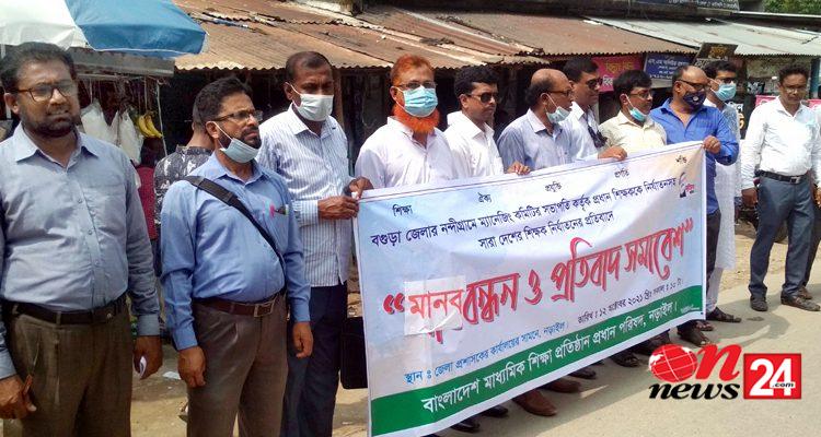 সারাদেশে শিক্ষক নির্যাতনের প্রতিবাদে নড়াইলে মানববন্ধন অনুষ্ঠিত