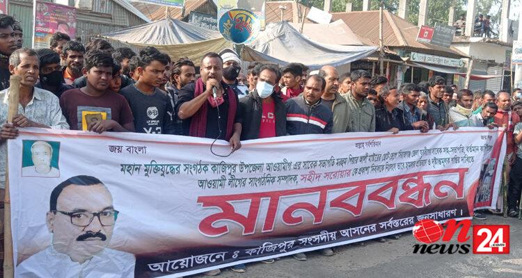 সিরাজগঞ্জের কাজিপুরে আওয়ামীলীগ নেতার উপর হামলার প্রতিবাদে মানববন্ধন