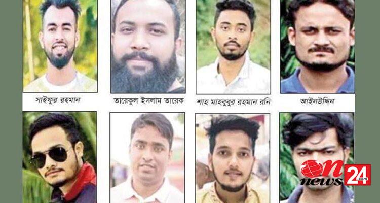 অভিযোগ পত্রে আসামিরা হলেন- সাইফুর রহমান, শাহ মাহবুবুর রহমান ওরফে রনি, তারেকুল ইসলাম ওরফে তারেক, অর্জুন লস্কর, আইনুদ্দিন ওরফে আইনুল ও মিসবাউল ইসলাম ওরফে রাজন, রবিউল ইসলাম ও মাহফুজুর রহমান ওরফে মাসুম।