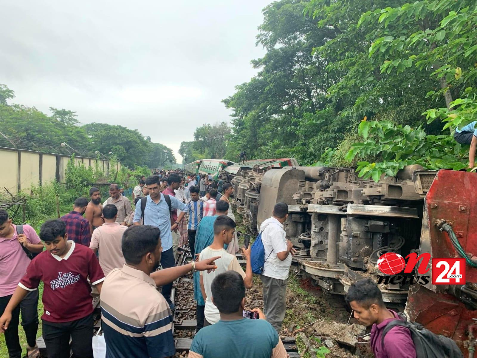 নুরুল ইসলাম আরও বলেন, ‘দ্রুত ট্রেন চলাচল স্বাভাবিক করতে উদ্ধার ট্রেন ঘটনাস্থলে যাচ্ছে। প্রয়োজনীয় পদক্ষেপ নেওয়া হচ্ছে।’
