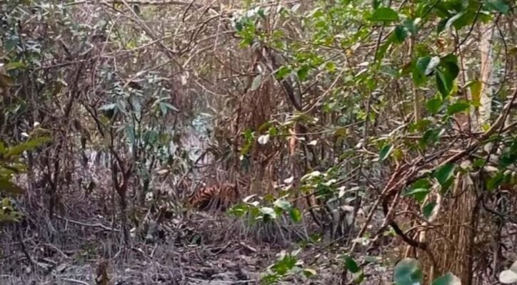 সুন্দরবনে হরিণ শিকারের ফাঁদে আটকে পড়েছে রয়েল বেঙ্গল টাইগার