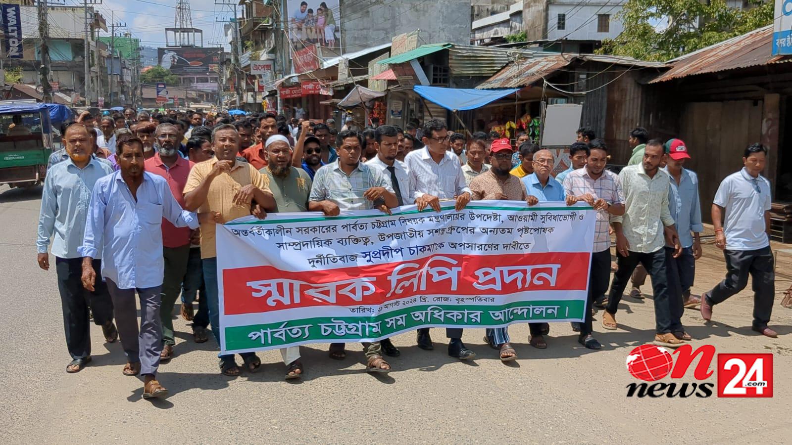 সুপ্রদীপ চাকমা’কে অপসারণের দাবিতে বিক্ষোভ মিছিল ও স্মারক লিপি প্রদান