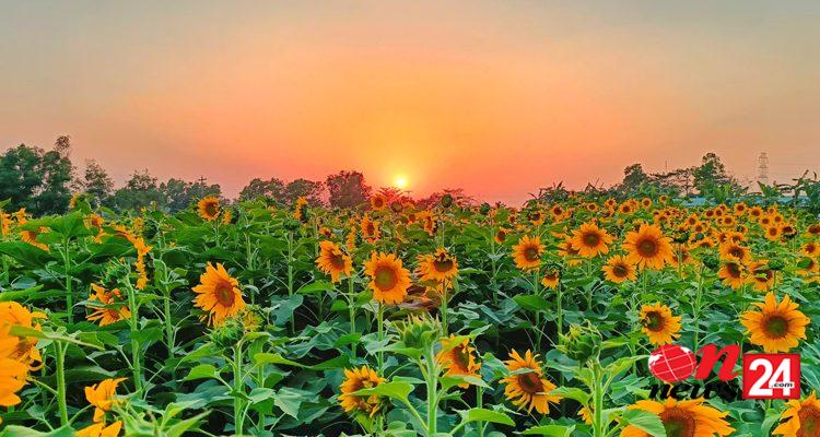 সূর্যের আলোয় মাখামাখি সূর্যমুখী ক্ষেত