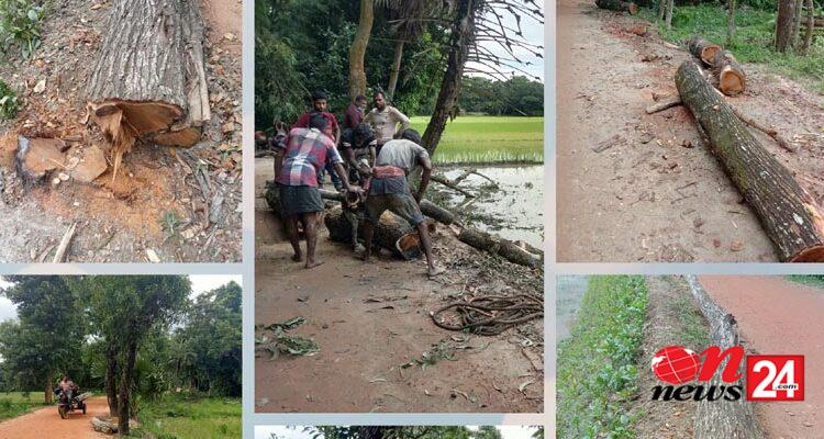 সোনাগাজীতে ইউপি সদস্যের নেতৃত্বে এলজিইডির সড়কের পাশের অর্ধ শতাধিক সরকারি গাছ লুট