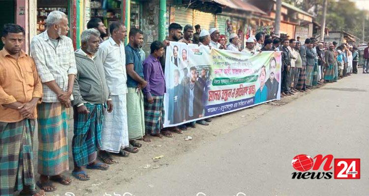 রোববার বিকালে নবাবপুর ইউনিয়নের রঘুনাথপুর বাজারে স্থানীয় আ.লীগ, সহযোগি সংগঠন ও সর্বস্তরের জনতার উদ্যেগে এ মানববন্ধন কর্মসূচী পালন করা হয়।